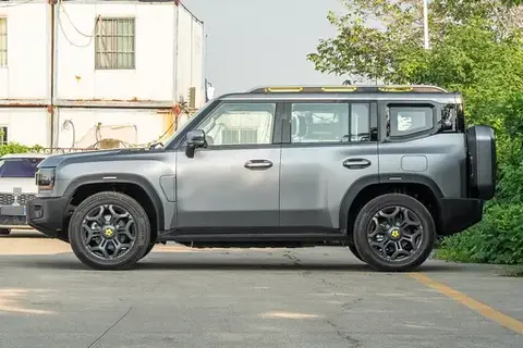 车身侧面,隐藏式的A、B、C、D柱巧妙地营造出悬浮车顶的视觉效果,搭配向外凸起的硬塑料轮眉,不仅凸显出粗犷的气质,还能在车辆行驶在崎岖路面时,有效保护车身,避免因轻微刮蹭而留下痕迹。20英寸的轮辋造型硬朗刚毅,与整车的硬派风格极度契合,无论是长途奔袭还是越野探险,都足够坚实可靠。