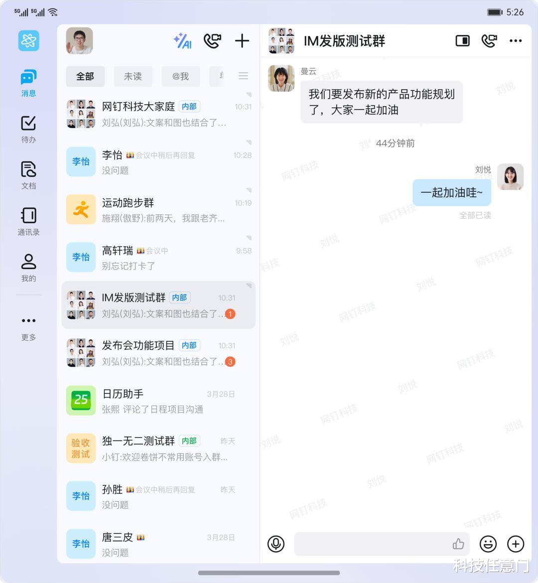 我去了解了一下,目前的内测版已经拥有即时通讯、语音会议、AI助理、钉盘、日历等常用的核心功能,支持鸿蒙端打包、分发、离线消息推送,以及新版本的快速升级。此外,钉钉专属版鸿蒙原生应用内测版还允许企业根据自身需求进行个性化定制。例如,企业可以自定义启动图、导航栏、菜单栏配置等页面和功能模块,从公司形象和功能体验两个方面保持企业形象的一致性。