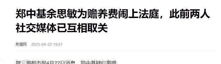 荆楚网:郑中基和余思敏因赡养费问题打上了法庭,早前两人社交媒体上已经互相取关。