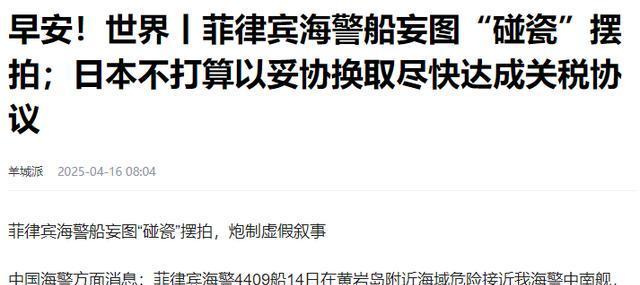 早安!世界,菲律宾海警船企图通过“碰瓷”摆拍制造事端;日本坚持立场,不愿妥协以求快速达成关税协议。