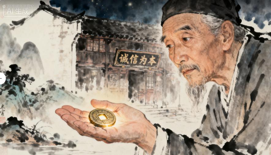 沈万和听着,心里渐渐亮堂起来。他想起自己进劣质棉布时,心里也曾犹豫过,可最终还是被 “贪念” 战胜了;想起伙计卷款逃跑后,他不仅没反思自己的问题,还骂伙计忘恩负义。他羞愧地说:“老人家,晚辈明白了,是我丢了诚信之心,才把生意做垮了。”