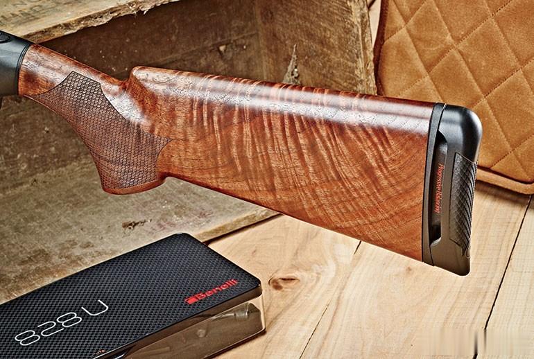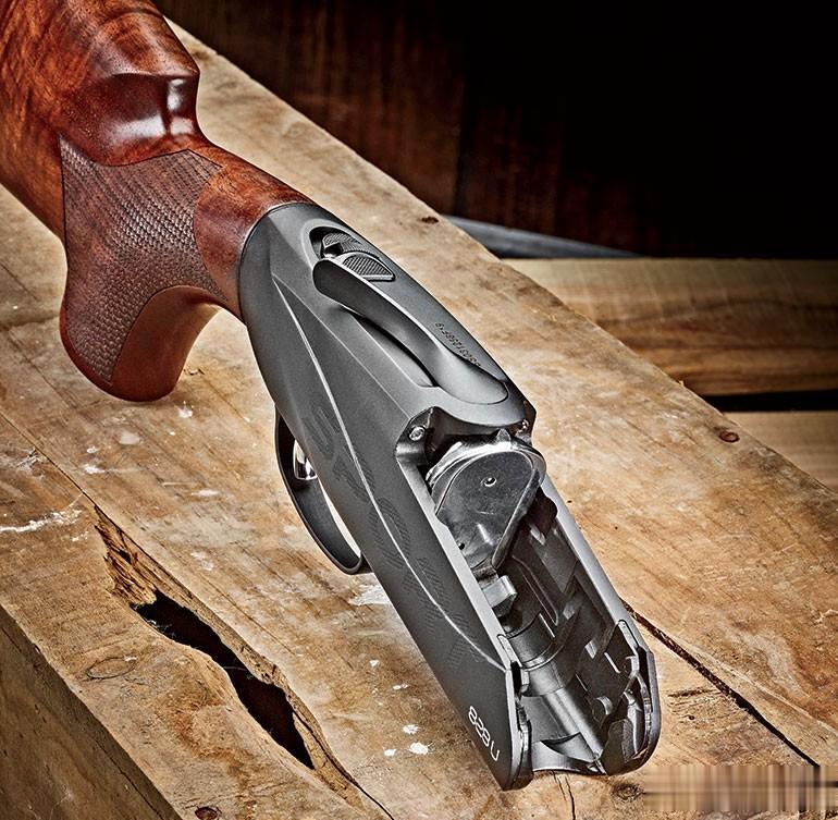 独特扳机,设计大胆创新大多数双管霰弹枪将火控系统置于上下枪尾之间(这就要求枪托颈部绕过两侧),但828U的后部采用了类似连发枪的布局,使得枪托的安装方式与自动装填或泵动式霰弹枪一样。贝内利自动装填霰弹枪用于调节枪托落差和偏移量的垫片系统,也能应用到这款双管霰弹枪上。