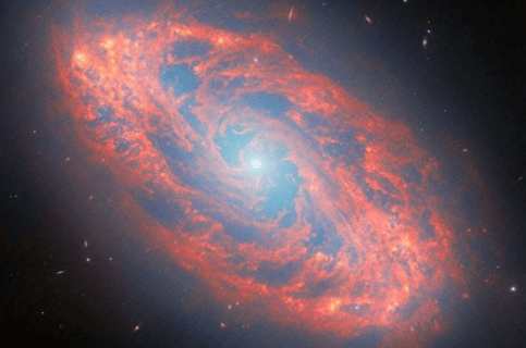 韦伯望远镜的两台主要仪器协同完成了这次观测。中红外仪器收集了星系星际云中温暖尘埃辐射出的中红外光,这些尘埃中部分由名为多环芳烃的复杂有机分子构成,为研究星际介质中的化学反应提供了途径。近红外相机则记录了波长较短的红外光,主要来自点缀在星系旋臂上的恒星和星团。