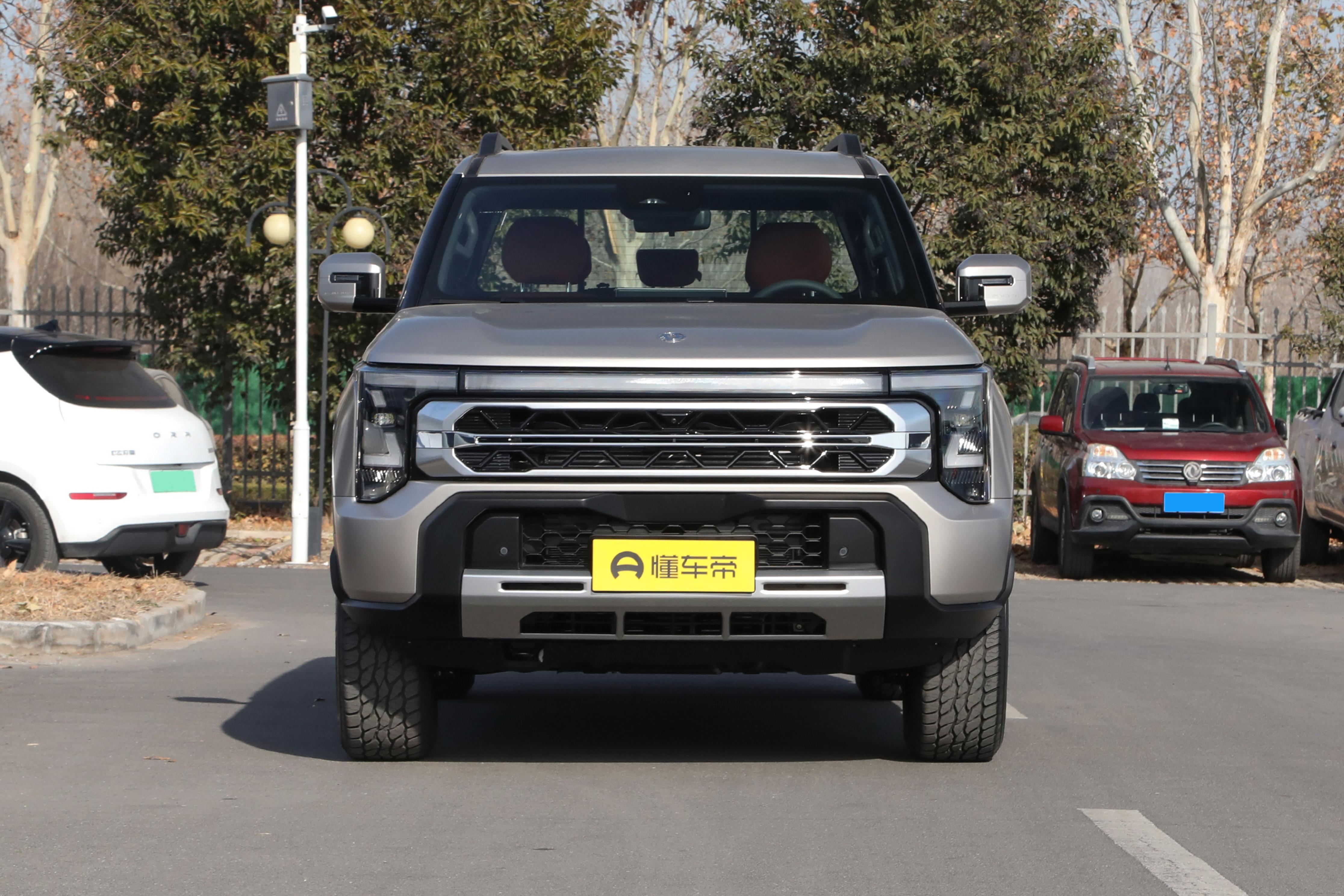 底盘设计内容才是展示特殊性的关键,前置四驱、全时四驱两者同步出现,也是传统燃油越野款式常用内容,一并标配的还有多片离合器式中央差速器,便于更好适应不同恶劣路况环境,同时优化了车辆的脱困能力。在前双叉臂式独立悬挂的支持下,座舱部分还有良好的舒适性提供,后方货斗仅使用整体桥式非独立设计即可,利用简洁结构的更好适用能力为支撑,平坦路况、崎岖路段均能驾驭。