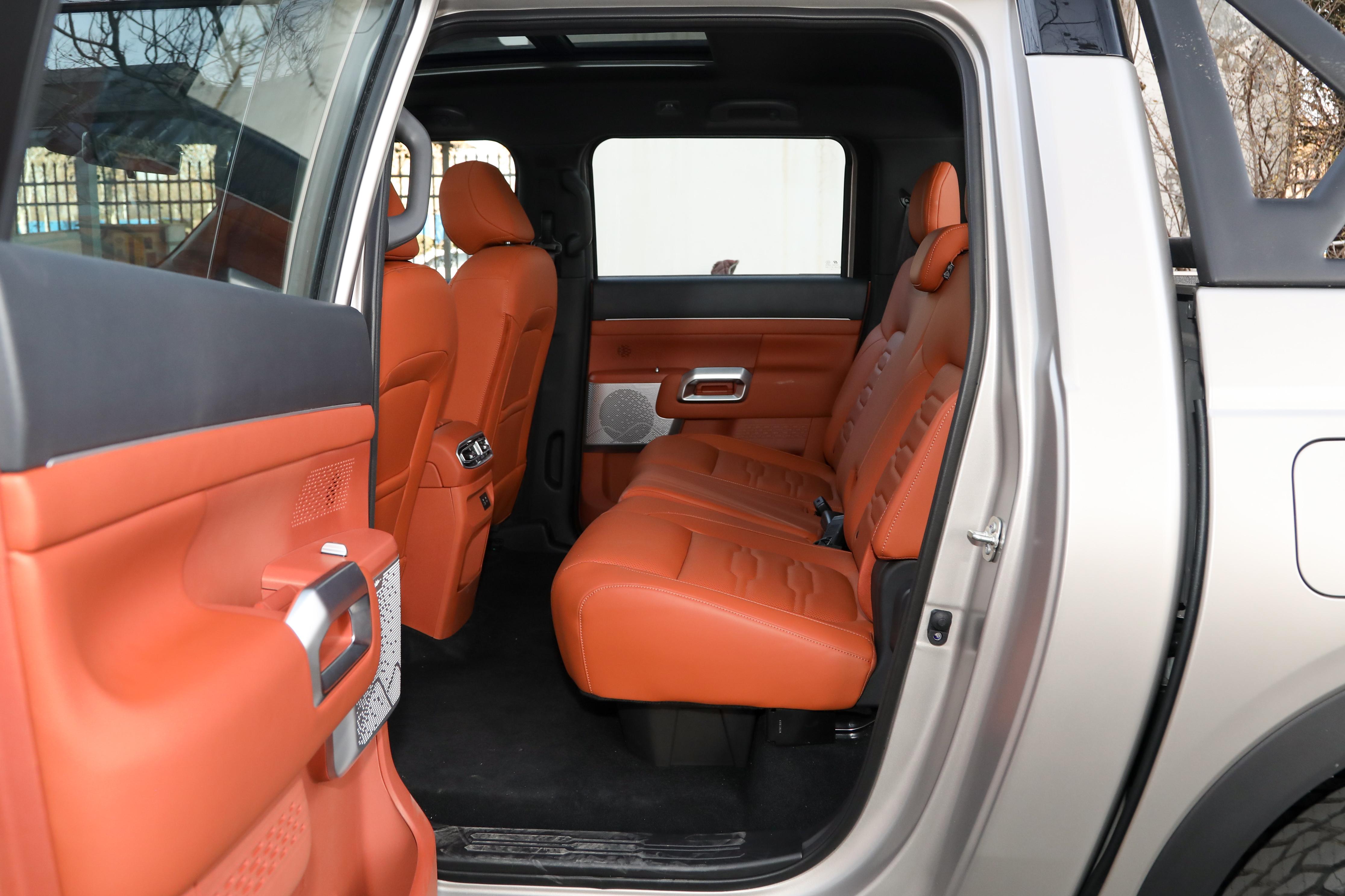 座舱基础保留5座排列,即使抛开货斗部分,也完全能把它看作一台不错的家用款式。座椅使用的Nappa真皮风格设计,皮料纹理更为精致,不论视觉、触觉都有明显档次强化感受,牛皮头层皮的基础选材,在触感传递的亲肤感与舒适度提升方面,显然具备更多优势,而且款式宽体结构设计也略微拓展了座椅,乘用时带来的包裹性还是挺能加分的。硬件内容填充还部分出现了真木与铝制设计的结合,整体质感明显获得更多加强。