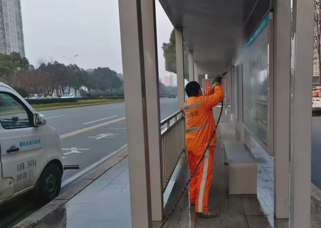 完善“机械+人工”作业体系,主次干道全面推行“洗+扫+冲+洒”一体化作业模式,确保路面“见本色、无积尘”,中心城区日均出动环卫工人1800余人次、机械化作业车辆90余辆,清洗道路120余条。针对背街小巷、人行道等机械作业盲区,采用小型清洁设备搭配人工冲洗的方式,组织工作人员逐街逐路清理路面油污、顽固污渍,日均清理地面油污150余处。同时,常态化开展城市家具精细化养护,安排专人每日擦拭、高压冲洗公交站台、护栏、果皮箱等公用设施,确保设施表面无灰尘、无污渍、无杂物;公厕严格执行“六净六无”保洁标准,全面推行“一客一洁”高标准作业流程,做到随脏随洁、即时维护,全面提升市容环境“颜值”与“气质”。
