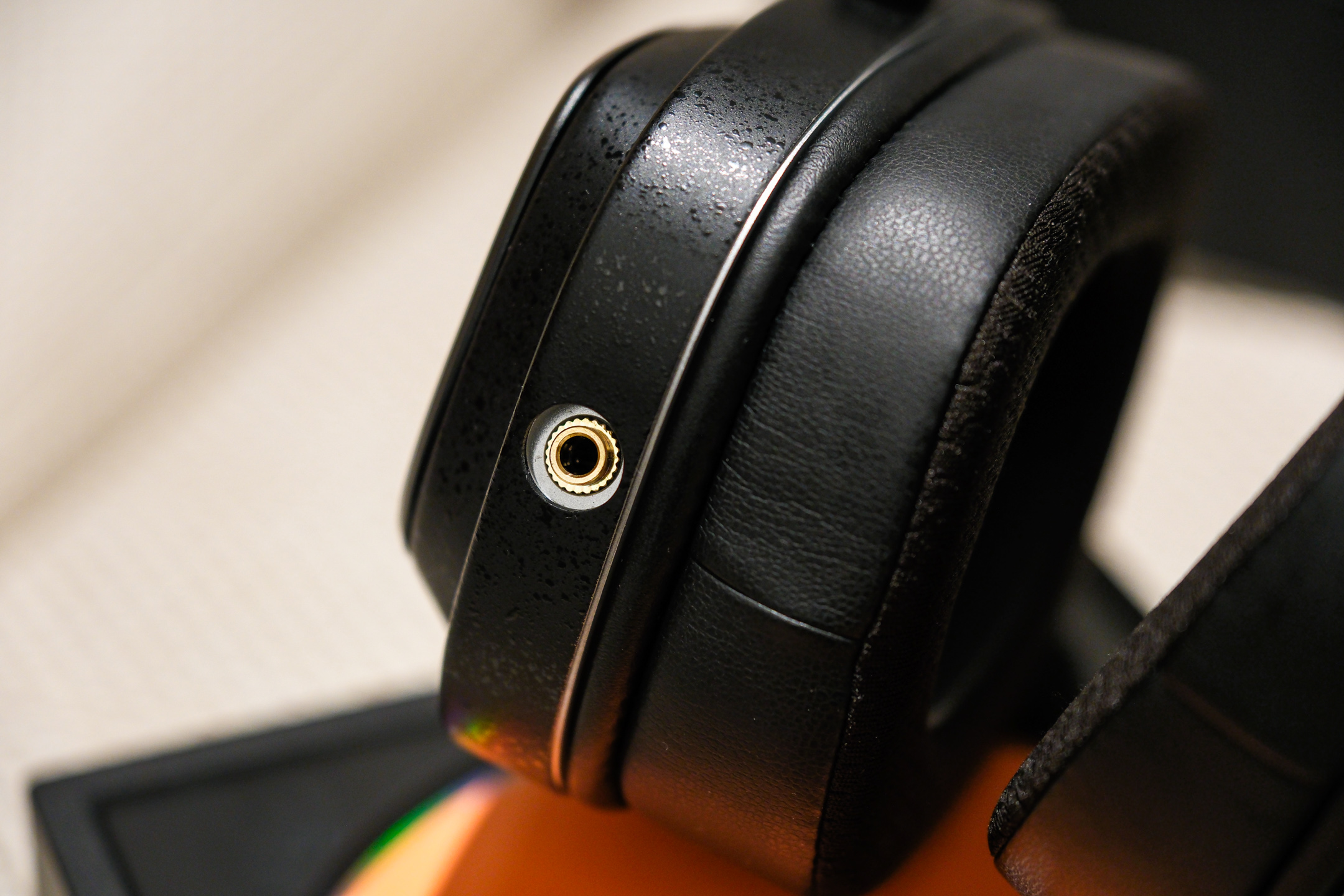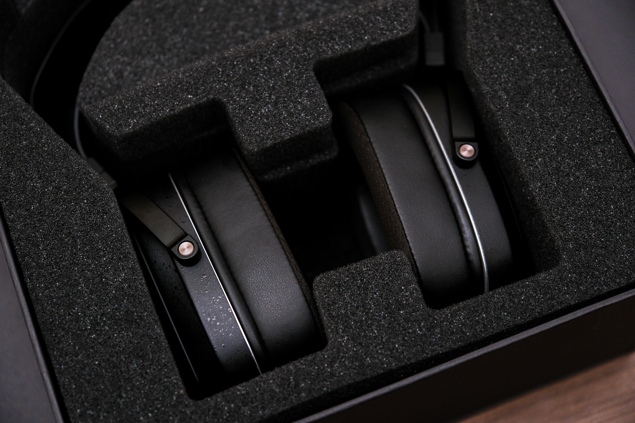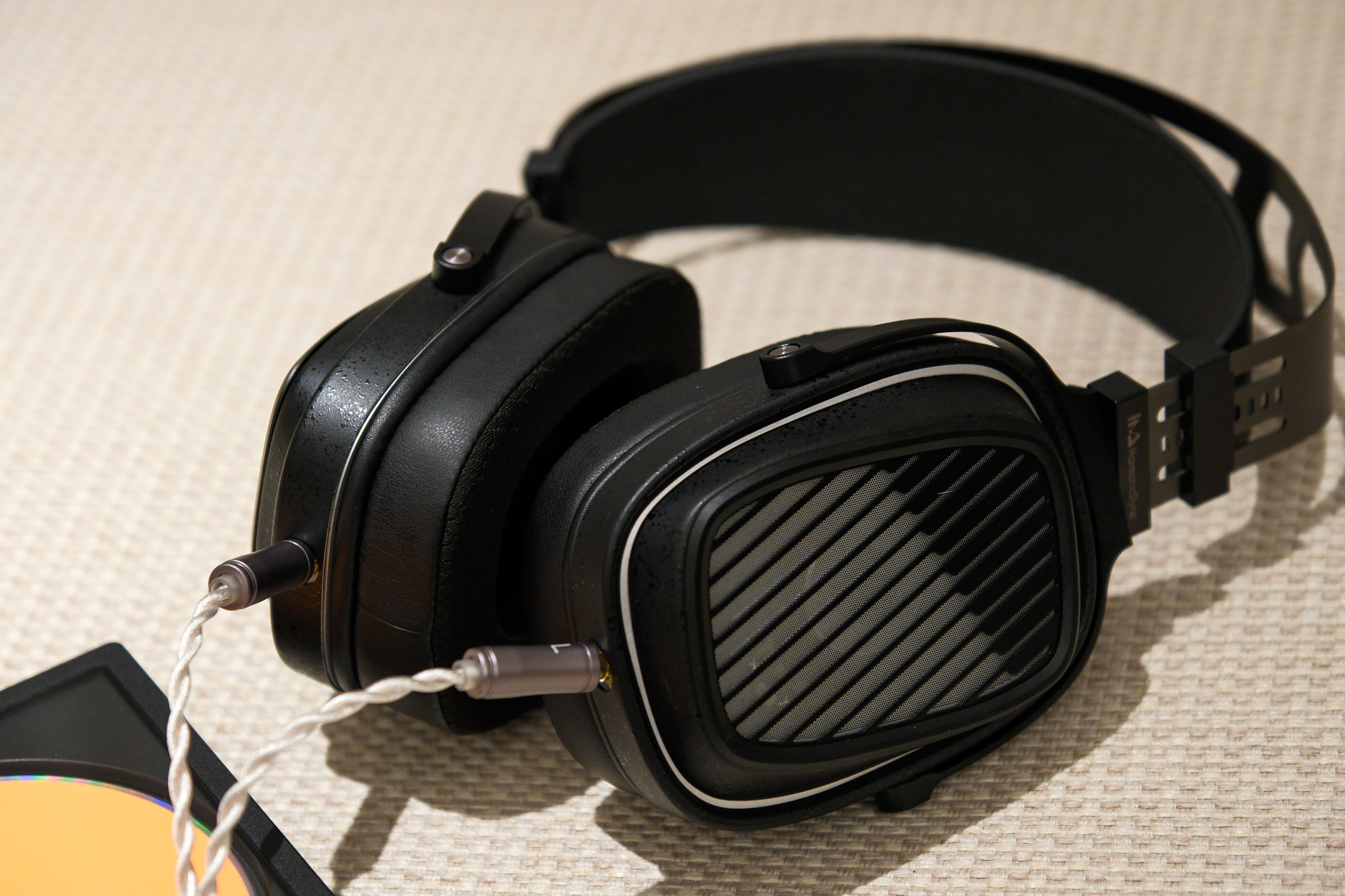 方形耳罩略显特立独行,柔软度和包裹感,还真是有些实实在在的优势,够舒服,而且贴合面部的纤维网,据说是深度声学考量的结果,选用了特殊的足球网材质,配合侧边的蛋白皮。