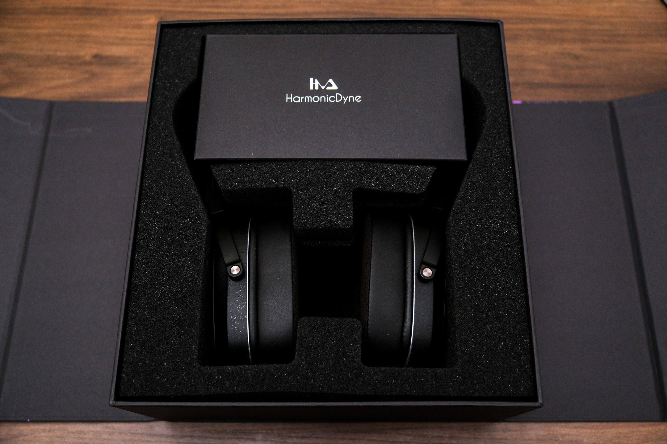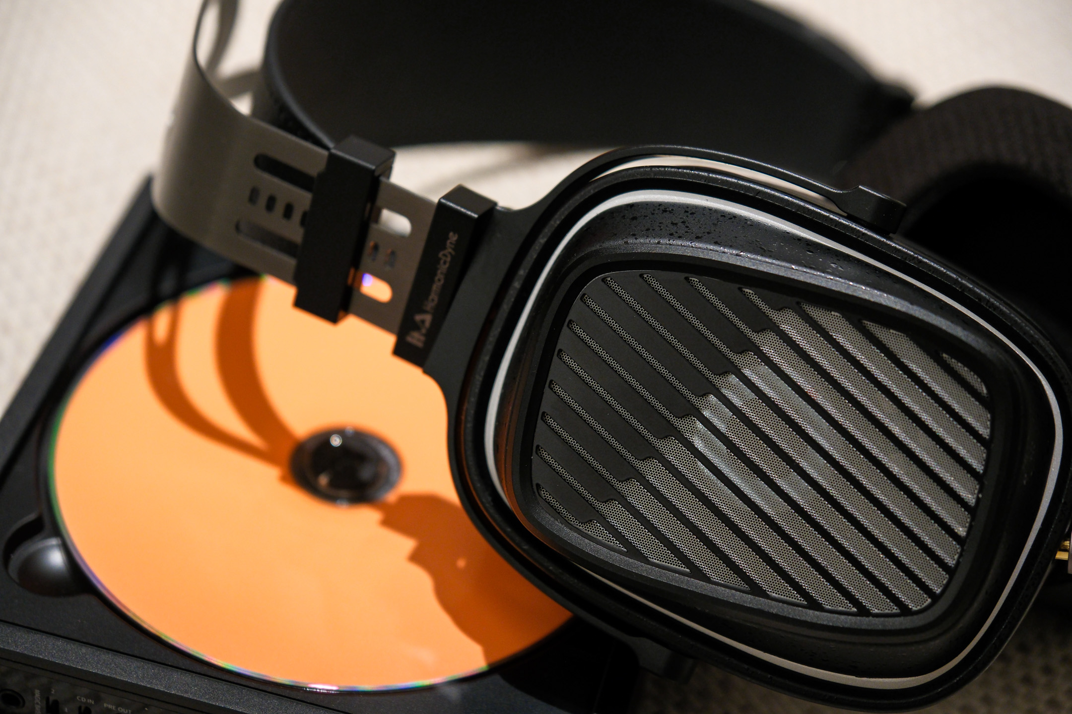 开放式动圈耳机,腔体面板是黑白琴键的设计语言,也或许有些声学巧思在上面。
