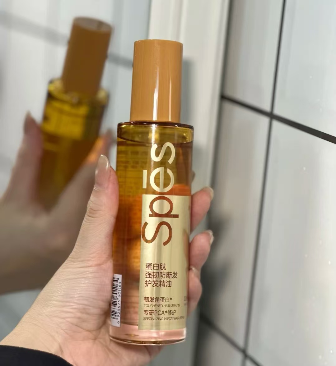 哪一款护发精油香味持久?Spes好用吗?spes家这款护发精油包装倒是挺有质感的,说是高定香氛系列,但实际闻起来就是淡淡的木质调,没什么记忆点,香气层次感也不强,不太容易留下印象。挤出来的质地偏厚重,是那种流动性一般的油状,吸收速度也慢,稍微多抹一点就容易让头发粘成一撮。