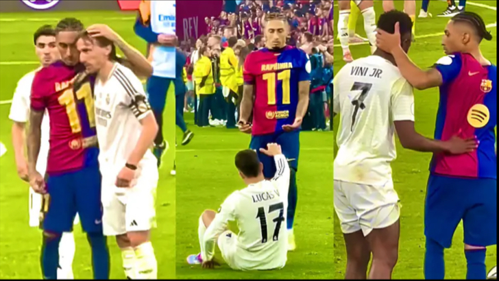 竞技体育的魅力不止于胜利者的欢庆,更在于失败者的落寞,以及胜者在狂喜之余,展现出的那份超越胜负的尊重。当巴萨球员沉浸在胜利的喜悦中时,拉菲尼亚的一个举动,让这场火星撞地球般的国家德比,增添了一抹温暖的色彩。