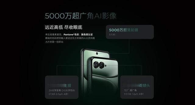 新机后置5000万像素主摄+5000万像素超广角微距双摄,内置4700mAh电池,支持68W有线+30W无线充电,支持IP48级别防尘防水。