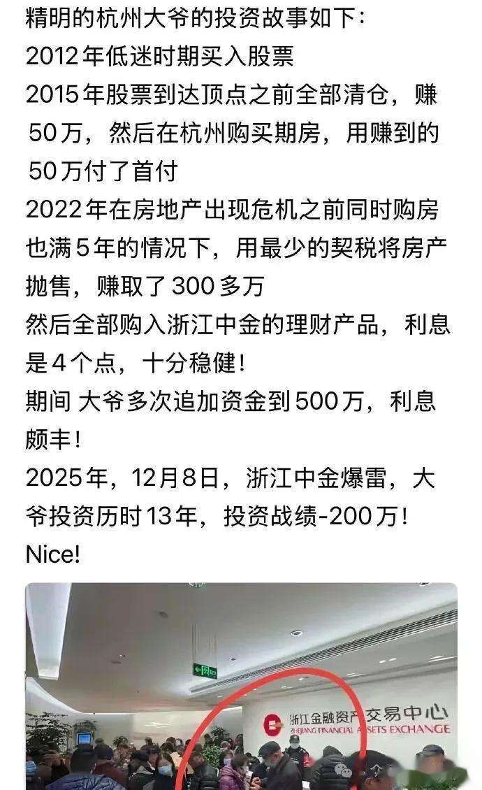 前天提到了一家理财公司延期兑付,今天刷到一个杭州大爷的投资故事,