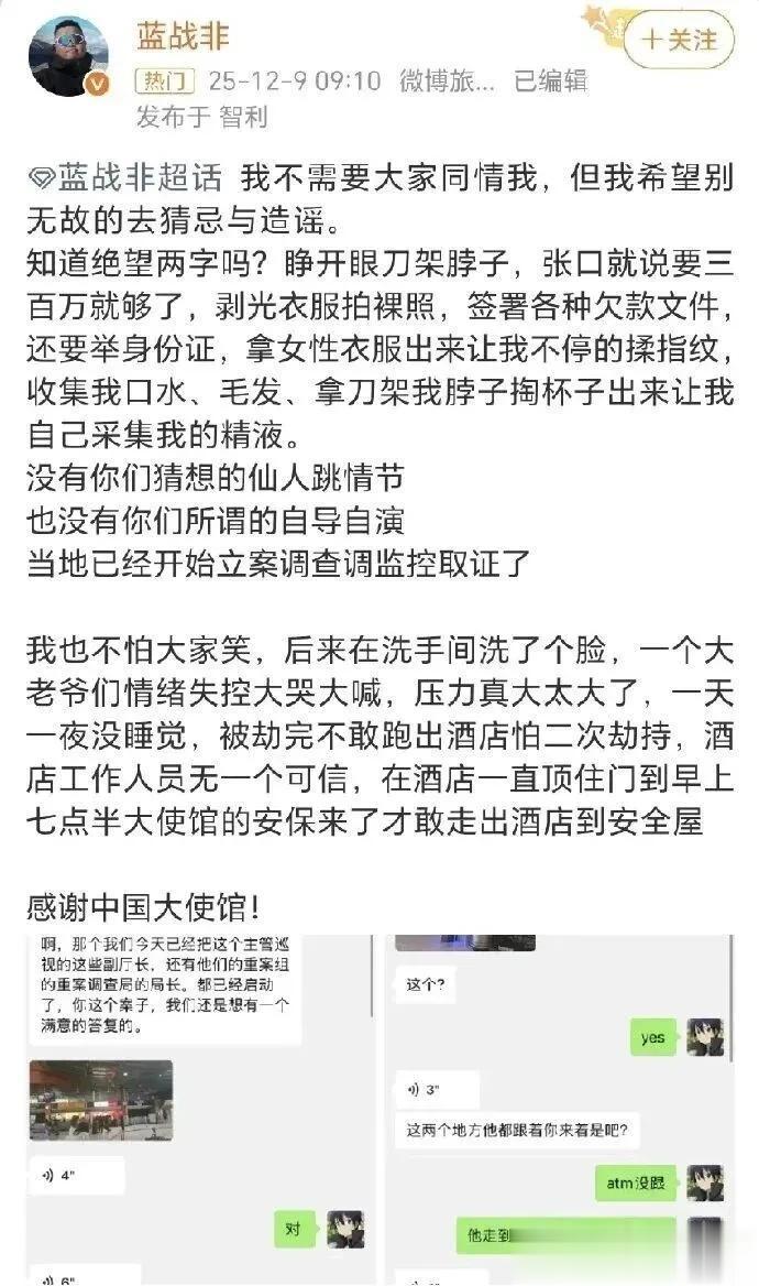 财不外露,行踪保密: 像蓝战非这样的大V,行程几乎是半公开的。在社交媒体上实时分享定位、在酒店直播,在治安不稳的地区,这就等于是在给劫匪发“邀请函”。