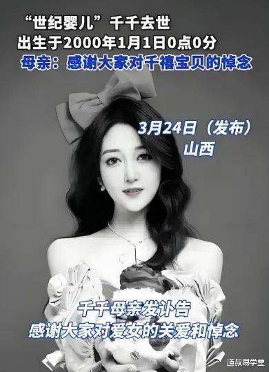 2025年3月24日,"世纪婴儿"的千千因心源性猝死离世,她的生命定格在25岁。
