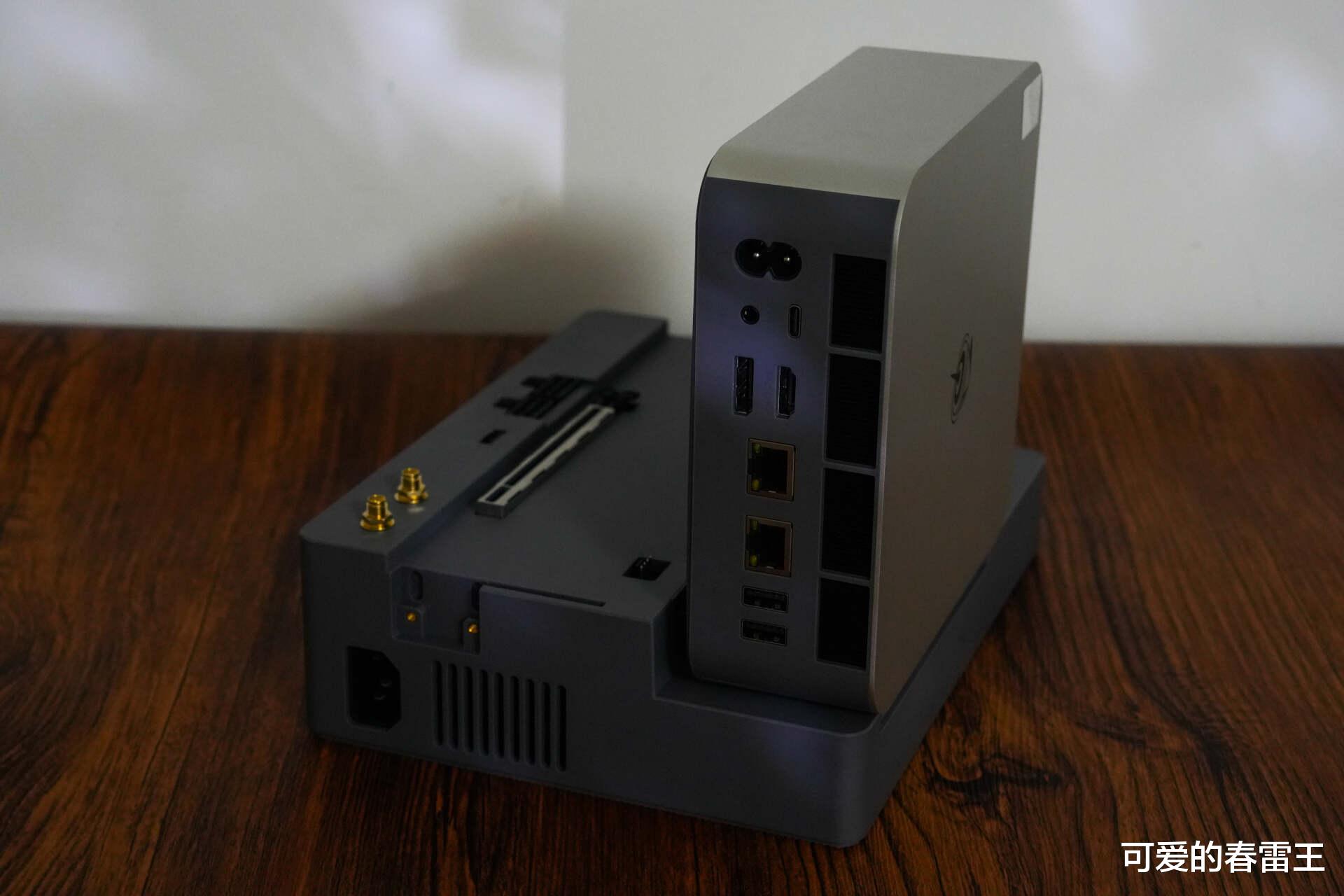 主机尺寸很精巧,长宽都是158毫米,高度55.8毫米,体积只有1.4升。放在我的工作台上完全不占地方,银灰色的外观配上简洁的线条,既专业又不失时尚感,和我的工作环境很搭。内置145W电源,搭载了英特尔酷睿Ultra 9 285H处理器,配备双万兆网口,底部还预留了一个PCIe 5.0×8扩展插槽,可以搭配扩展坞使用。