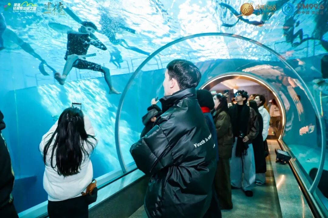 告别非遗体验,水之极潜水酒店的活力瞬间点燃了留学生们的热情。作为国内设施最齐全、功能最丰富的潜水主题酒店,配套42米深潜池、冲浪馆、法卡拉瓦泵道、专业抱石攀岩馆等多元运动设施,能给游客带来极致地体验、极致地社交以及极致地摄影拍片,成为建德“轻极限运动之城”的核心打卡地。