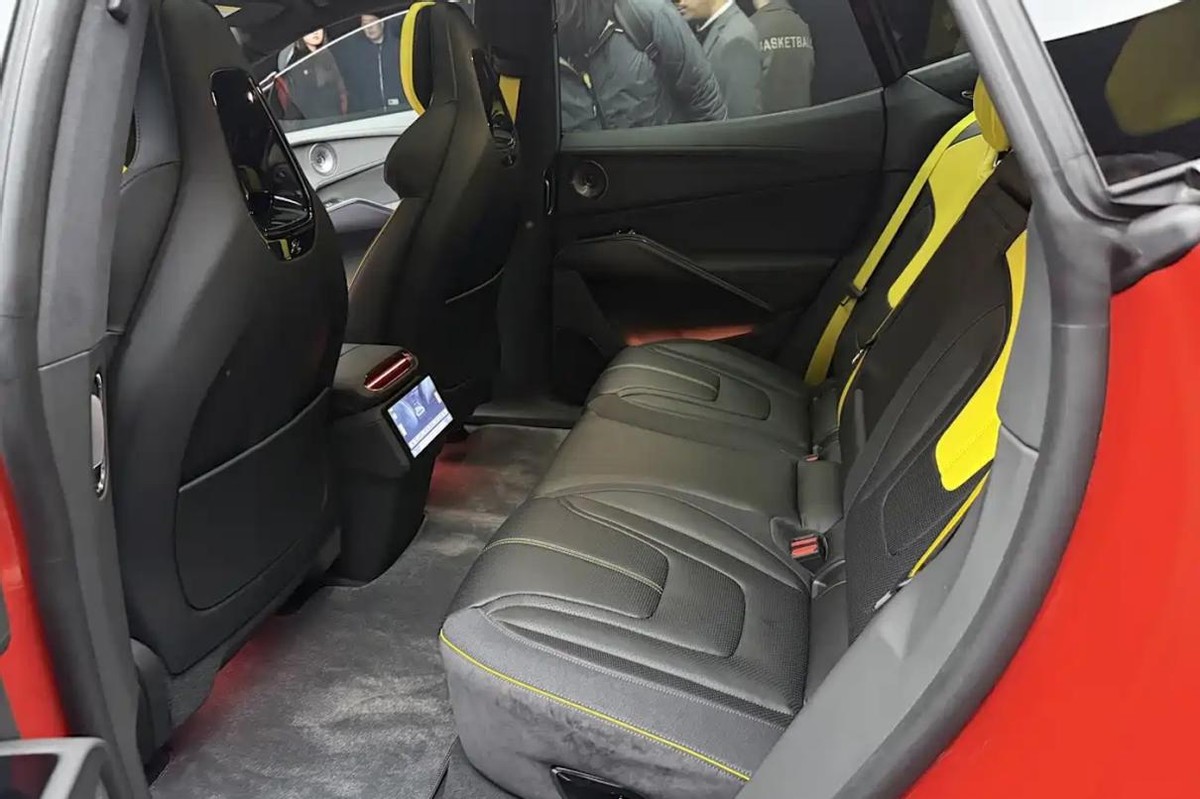 至于说此次展示的实车内饰设计,它在整体上与ELETRE大体相似。这里的主体造型都呈现出了一种相对标准的“T”型布局,而中控台会采用两端对称式的设计,并带有一些数字氛围灯与机械风格的立体结构。座舱内预计还会使用比例不小的碳纤维材料,并有大面积真皮+Alcantara材质来包覆座椅,而这些用料的选用在同级别高性能SUV中,也属于比较主流的做法。