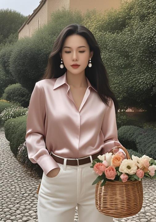 搭配四:轻熟混搭风上衣:灰粉色缎面衬衫(塞入高腰线)裤子:白色直筒牛仔裤鞋子:奶油色德训鞋配饰:珍珠耳环+竹编手提篮风格解析:缎面材质提升精致度,白色牛仔裤清爽减龄,德训鞋平衡正式与休闲,适合约会或下午茶。即梦图片提示词: