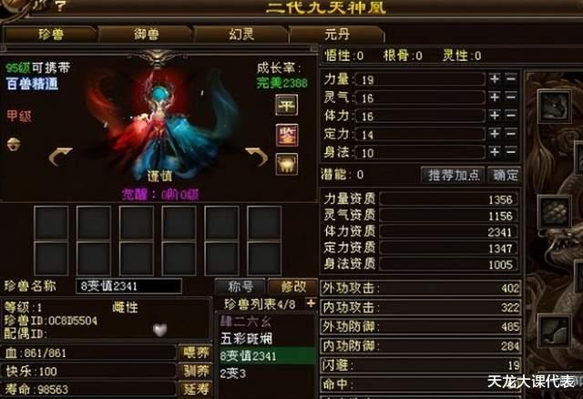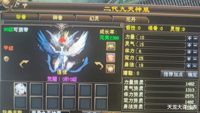 顶变外形,谨慎性格,资质2341的神凰,非常标准完美的宝宝。另一只胆小顶变2193的也还算勉强可以,再高资质的似乎就没有了,只能说不至于毫无收获,但也没有欧气爆棚。
