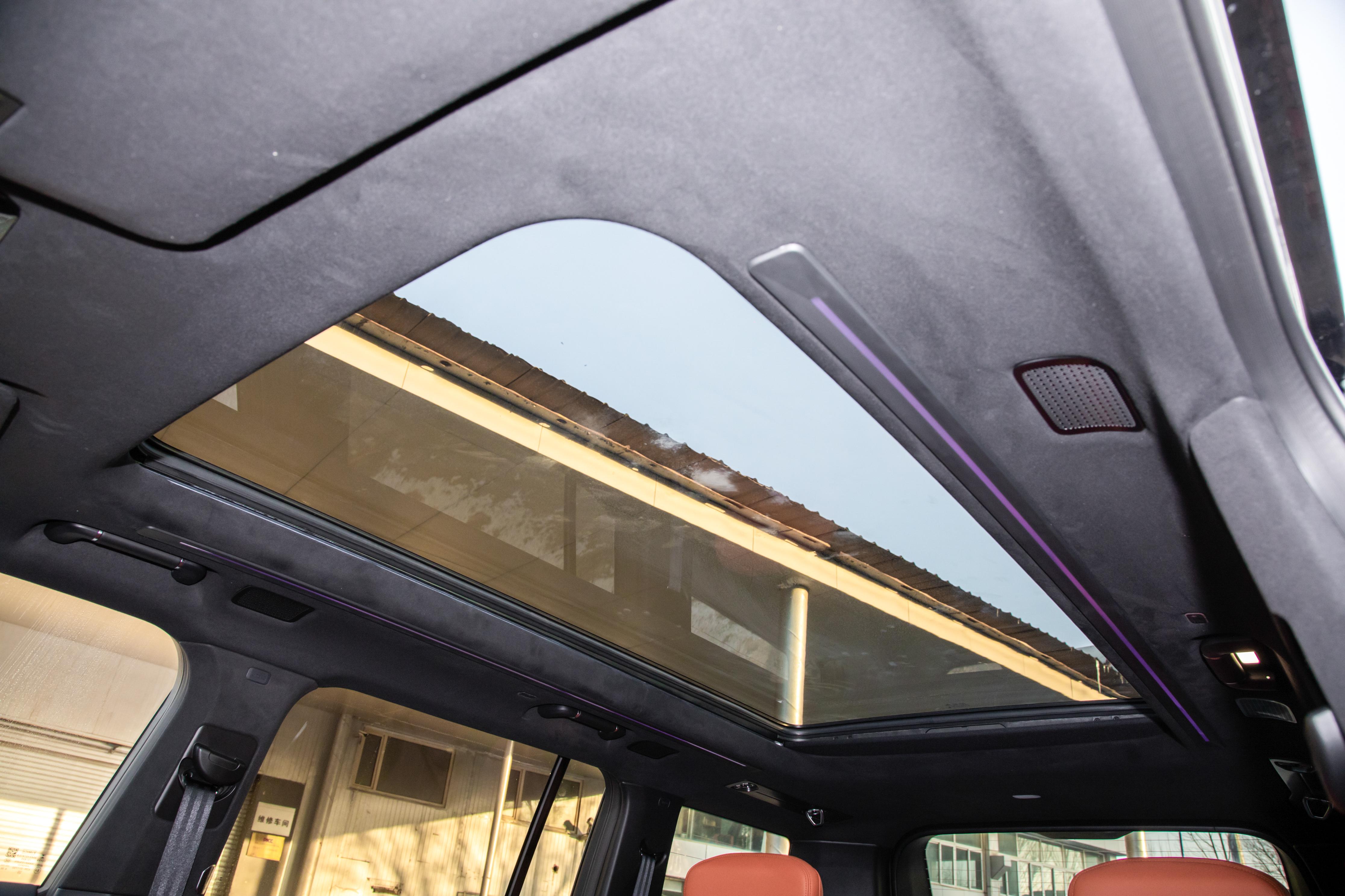 先说说日常家用的体验,虽然它是一台越野方盒子,但开起来一点不笨重,反而很灵活,完全没有传统硬派越野那种笨重的感觉。它的车身尺寸不算小,长5025mm,轴距2950mm,车内空间特别宽裕,就算身高178cm,调整好驾驶位座椅后,头部还有一拳多的空间,不会觉得挤;后排腿部空间更是超过两拳,后排地台几乎纯平,就算是满员乘坐,也不会觉得拥挤。