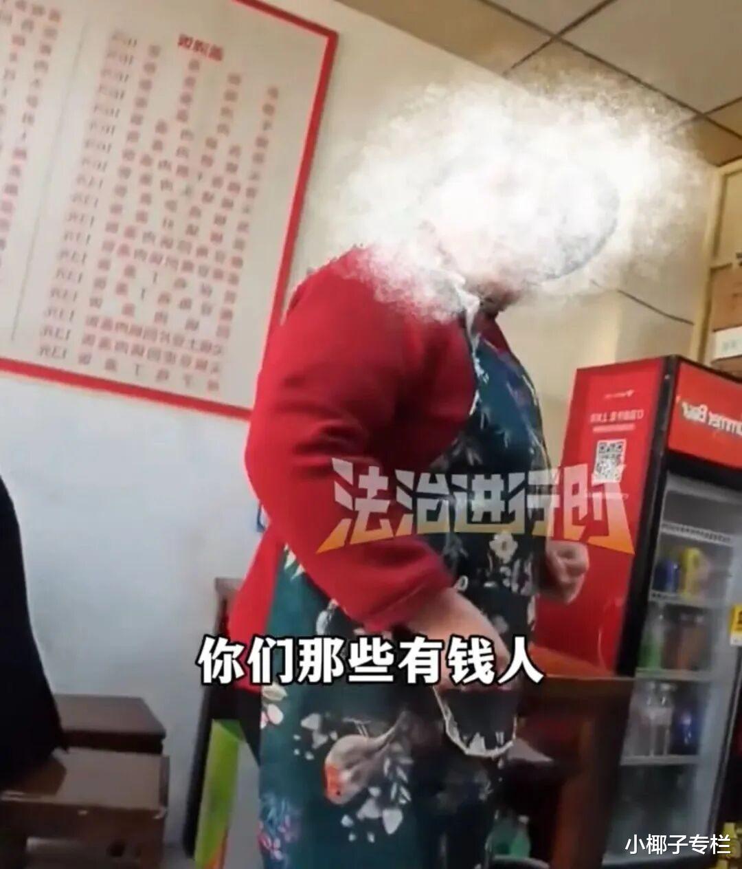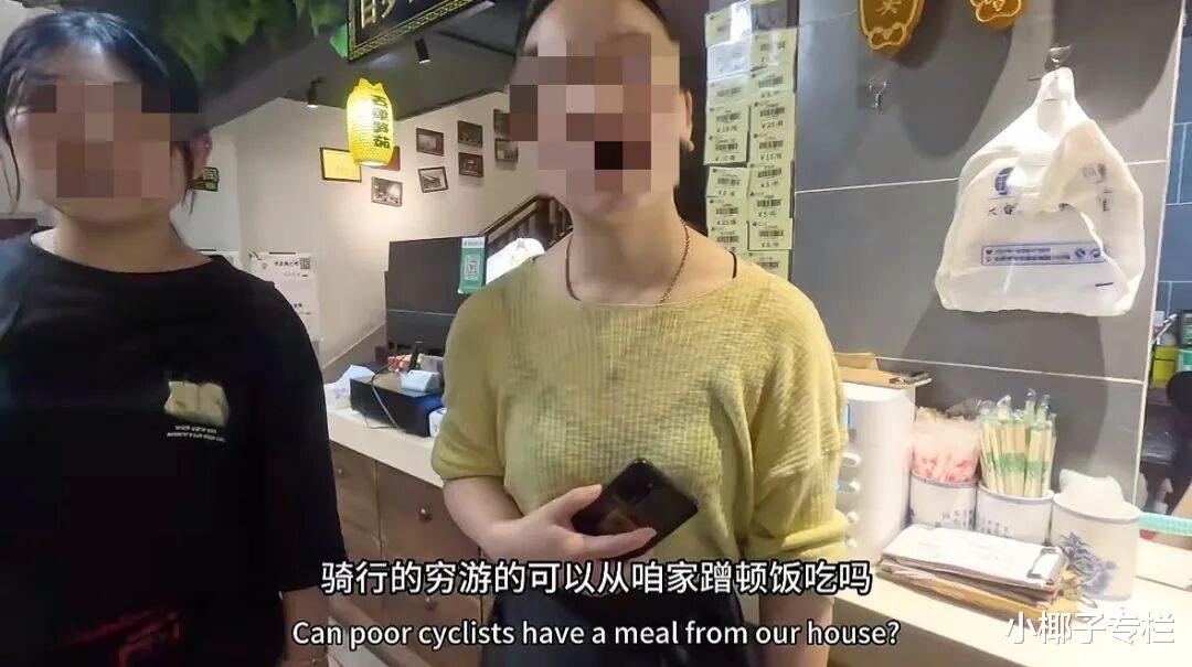 老板娘不吃这一套:“我们是帮助那些有困难的,要饭的,不是你们这种有钱人。你们有钱人是体验生活的,我们就没得饭吃。”