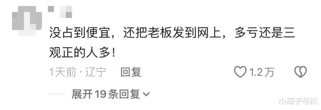“老板娘说得很在理。”“没占到便宜,还把老板发到网上,多亏还是三观正的人多。”