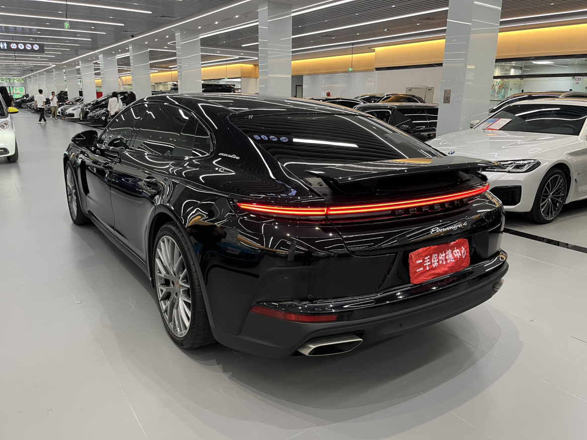 这辆二手保时捷Panamera的具体版本是——2024款 Panamera 4 行政加长版 2.9T,上牌地为广东深圳,上牌日期2024年8月,表显里程4千公里,新车指导价129.8万,二手车报价109.8万,过户次数0次,车身颜色为黑色,同色深浅内饰。按目前109.8万的报价计算,与新车相比,大约节省20万。