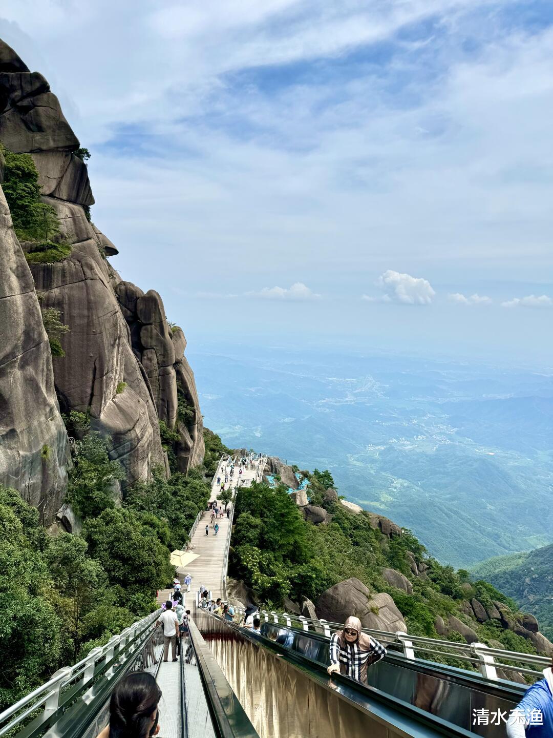 而且这电梯,不是张家界那种直上直落式电梯一分钟就到山顶,灵山的电梯是像逛商场一样的那种扶梯,可以站在电梯上,缓缓上行中尽情欣赏灵山的美景。