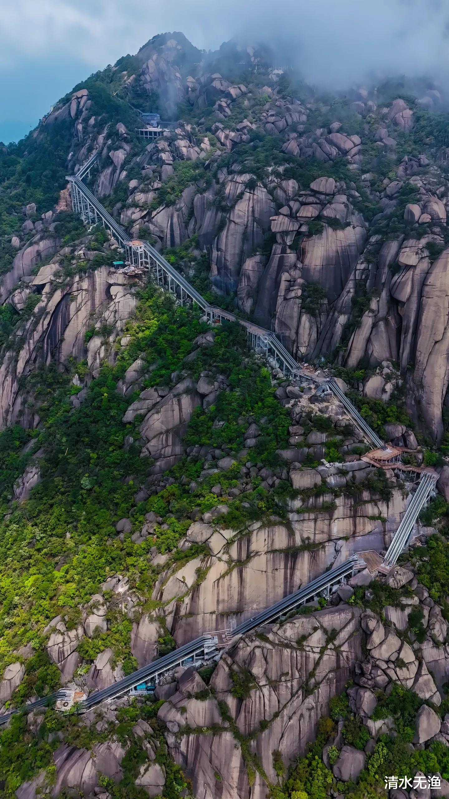 电梯分为好几段,上行一段后,可以停下来欣赏风景。可以选择继续坐电梯上山,也可以选择徒步登山,极大的方便不同人群的登山需求。