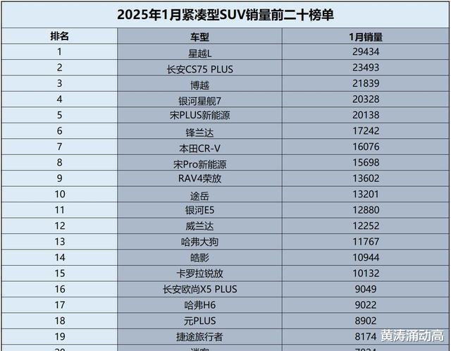 购车前,网友可参考销量榜单,了解紧凑型SUV热销车型。鬼哥依据1月乘联会零售数据,整理出紧凑型SUV销量前二十排名,以供消费者参考。
