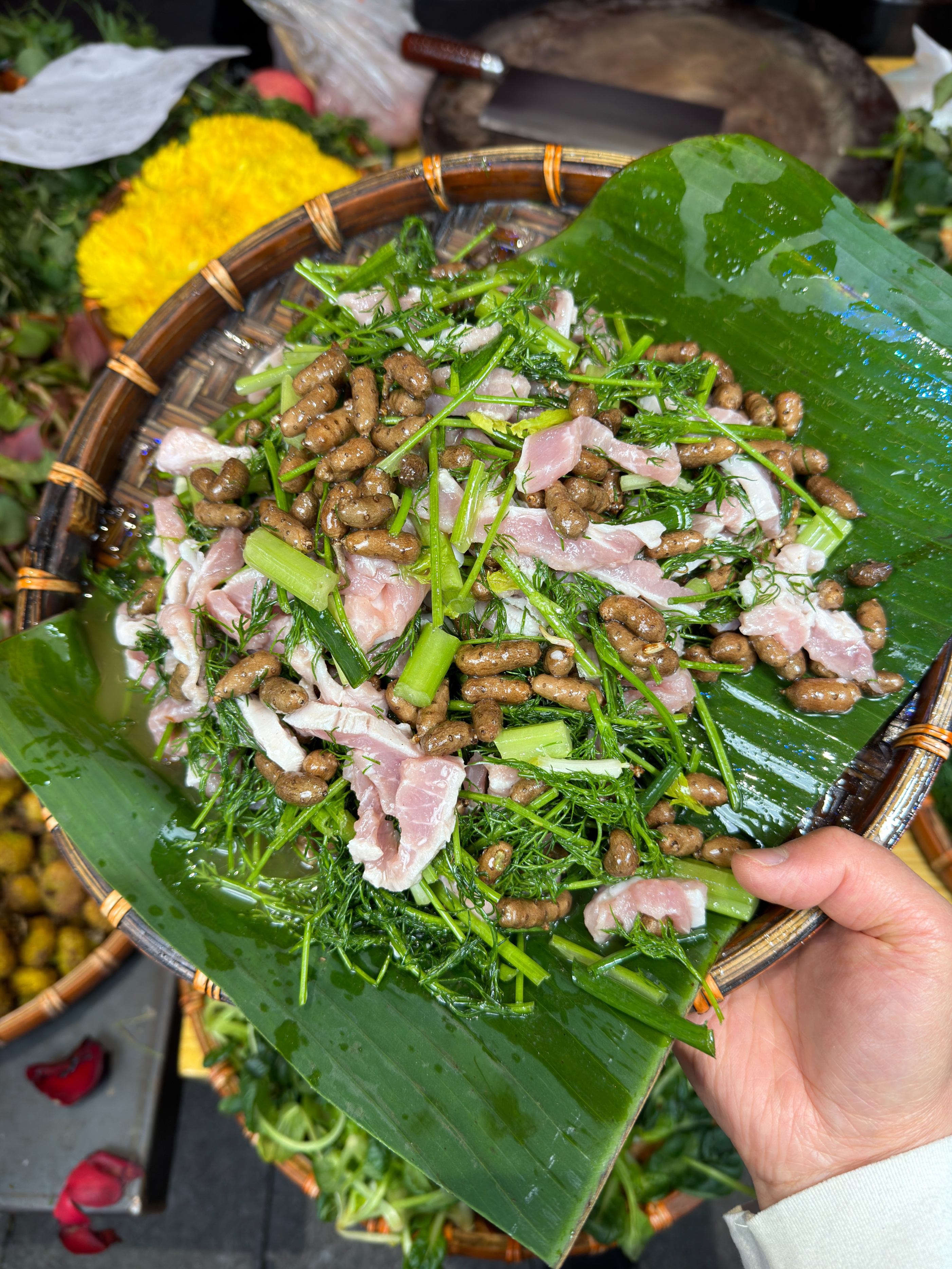 二是当天现舂的山野蘸水。木姜子、素番茄、毛辣国、薄荷、洋荷、小金桔、刺梨等十多种山野果蔬,每日新鲜舂制而成。“虽然不放折耳根,但特别受欢迎,本地外地客人都爱,平均要加两三次,有的加四五次。”