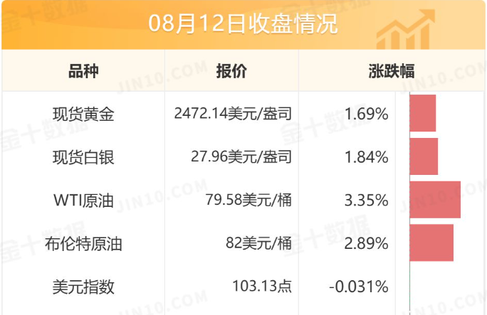 由于伊朗对以色列的报复行动在即引发的避险需求,昨天现货黄金大幅走高,站上2470美元大关,最终收涨1.69%,报2472.14,为8月2日以来的最高点。国际油价也引来大涨大涨。WTI原油最终收涨3.35%,报79.58。