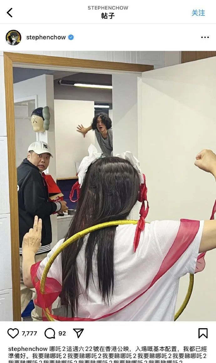 这事儿还得从《哪吒2》说起。这部电影,那可是火得一塌糊涂!全球动画票房榜第一,全球影史票房榜第八,这成绩,杠杠的!你说神奇不神奇?这不,星爷都忍不住了,不仅在社交平台上高调“表白”,还亲自上阵,cos了一把哪吒,戴着乾坤圈,穿着混天绫,头上还扎了两个小丸子,这造型,真是绝了!他的经纪人陈震宇也跟着晒图,看来星爷这回可是玩真的。