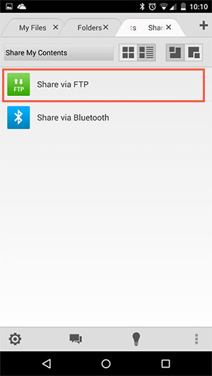 在安卓设备上安装并启动该应用,点击「我的工具」,选择「分享我的内容」,再点击「通过 FTP 分享」。