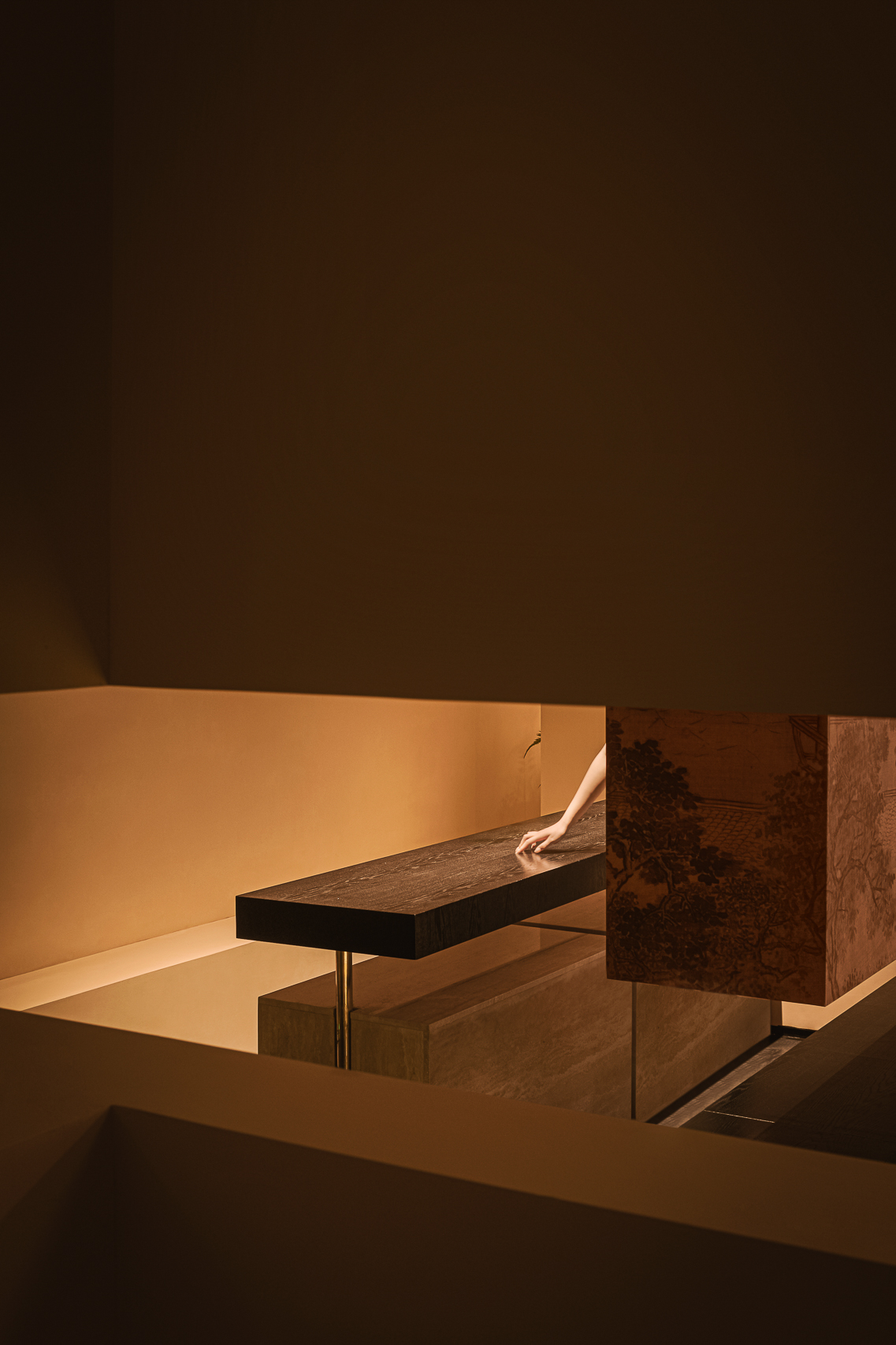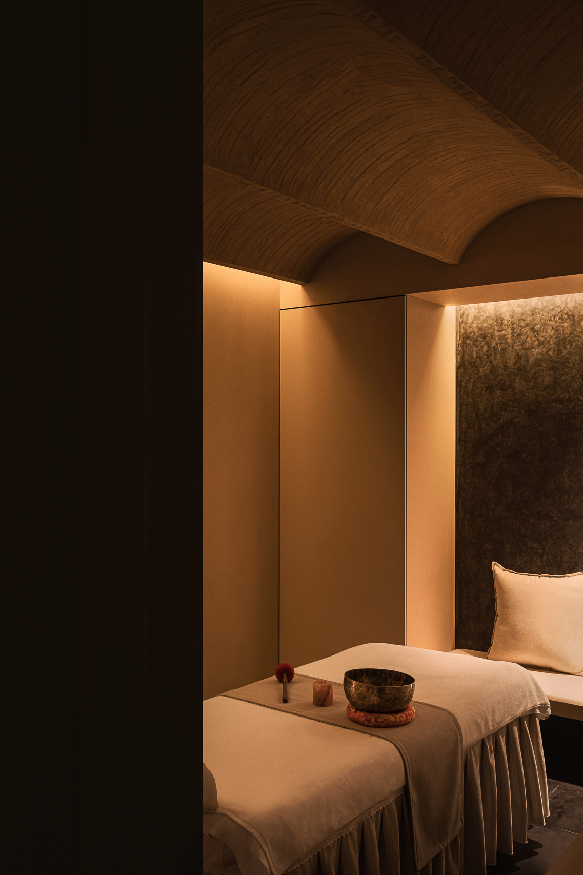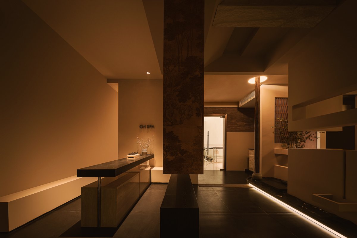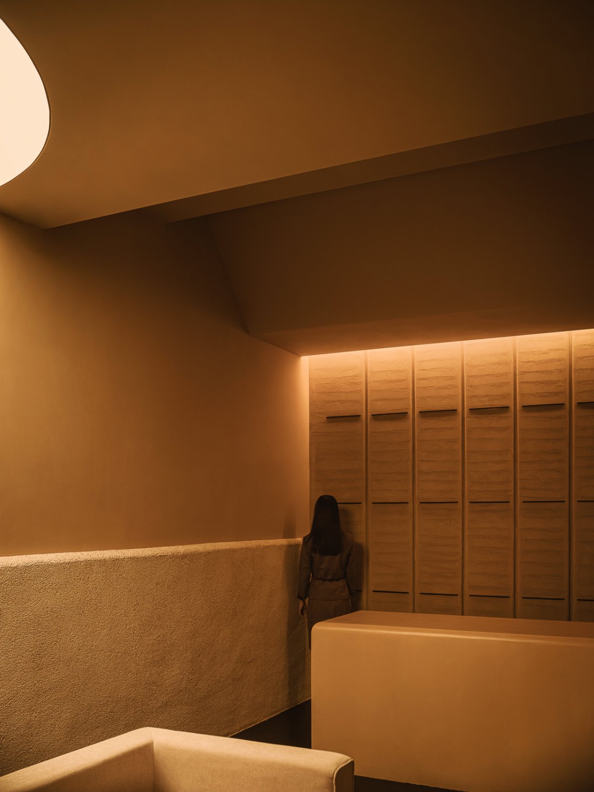 SPA馆设计师在设计中通过不同材质与表现手法的运用,在移步换景中体现了人与空间或是材质的交互,从而探索新的感官体验。在休息等待区域使用柔和的灯光,可以让客人感到舒适和放松,从而更容易接受品牌的理念和产品。