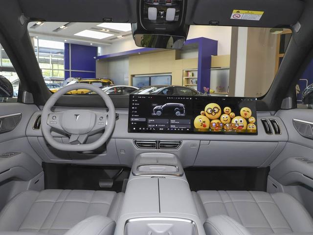 进入车内,平直的中控台厚重,造型与理想系列车型的设计相似,采用双15.6英寸2.5K联屏+43英寸AR-HUD组合,配合后排21.4英寸3K吸顶娱乐屏,形成四屏联动生态。移动中岛集成10L压缩机冰箱,支持-6℃-50℃全域温控,结合SPA级座椅(通风/加热/八点按摩)和57dB(A)静音工程,打造剧院级舒适体验,布局方面,新车的第二排180mm双横滑座椅支持商务四座/亲子六座模式切换,配合可拆卸小桌板与航空级腿托,实现“三间房五张床”的百变空间组合,长途出行乘坐舒适感比肩MPV车型。