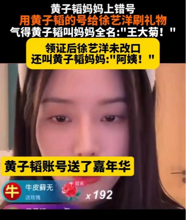 黄子韬母亲在直播中误登其账号,也引发了网友的热议。许多人对这种意外的出现感到惊讶,但同时也有人对此表示理解。毕竟,在现代社会中,家庭成员的共同参与和互动已成为一种普遍现象。徐艺洋对此的幽默回应,再次证明了她的智慧和风度。