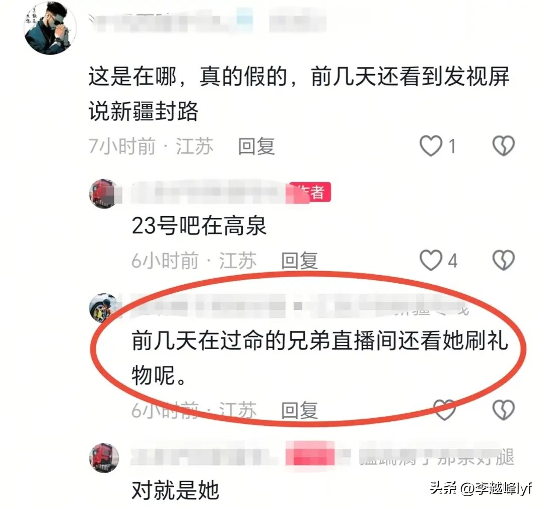 有网友之前还看到她发布视频,说是新疆封路,所以对她离世的消息,感到难以置信。而且就在前几天,还看见她在直播间刷礼物。