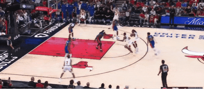 NBA常规赛,活塞对阵公牛的比赛正在进行中。