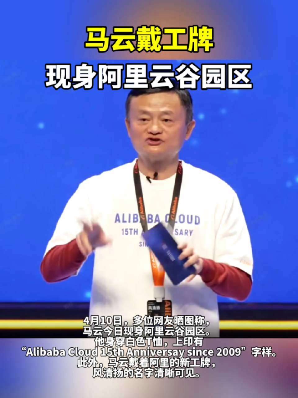 2025年4月10日,阿里巴巴创始人马云现身杭州阿里云谷园区,出席新财年启动会并发表演讲。此次亮相是马云近年来多次回归阿里园区的延续,其身着印有“阿里云15周年纪念日”的白色T恤,佩戴新版工牌“风清扬”,引发外界对阿里战略动向的广泛关注。