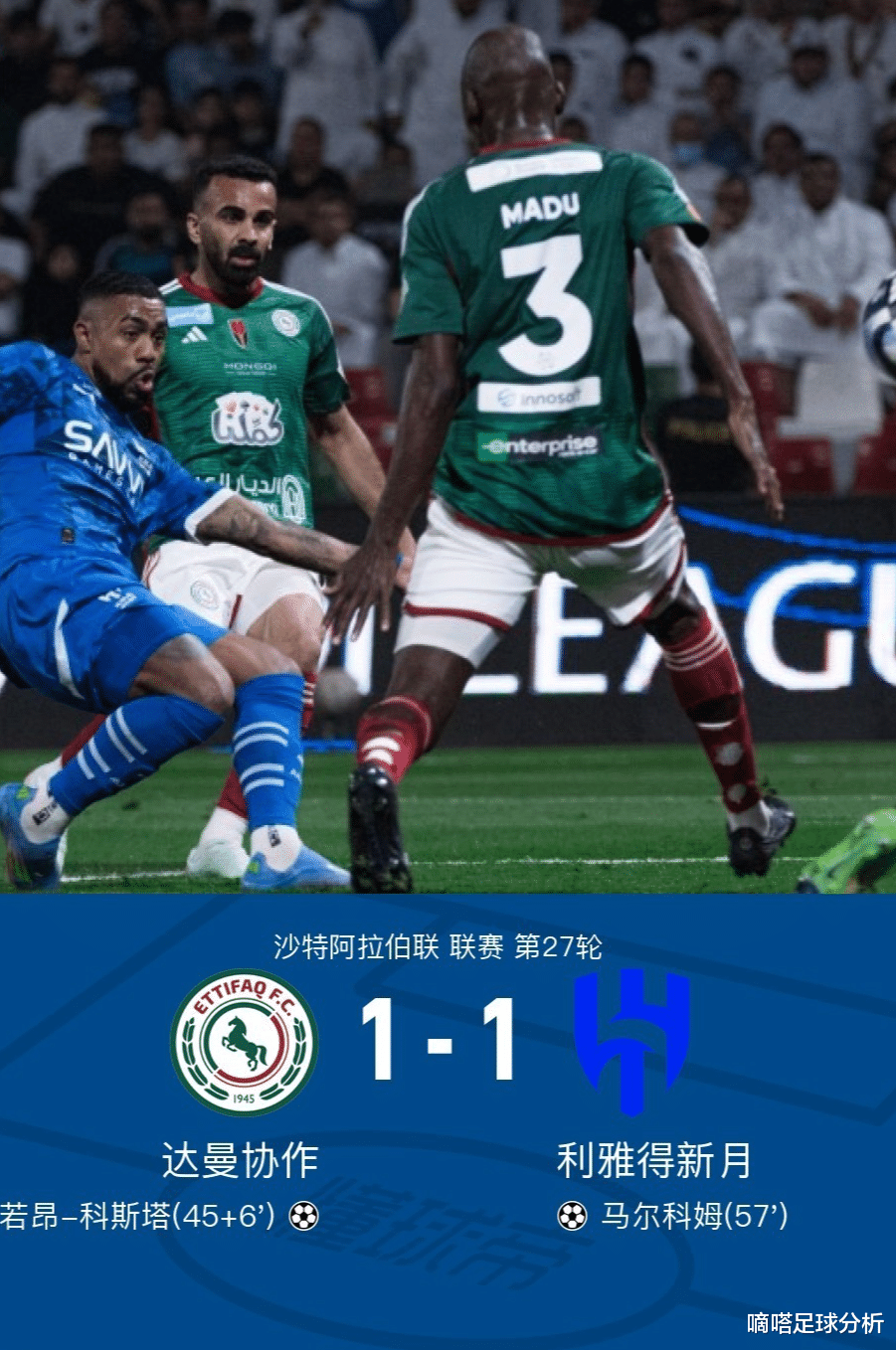 这场在达曼协作主场进行的沙特阿拉伯联赛第27轮比赛,无疑是本轮联赛最大的焦点战役。两支豪门球队,达曼协作与利雅得新月,奉献了一场精彩绝伦的对抗,最终以1-1握手言和。