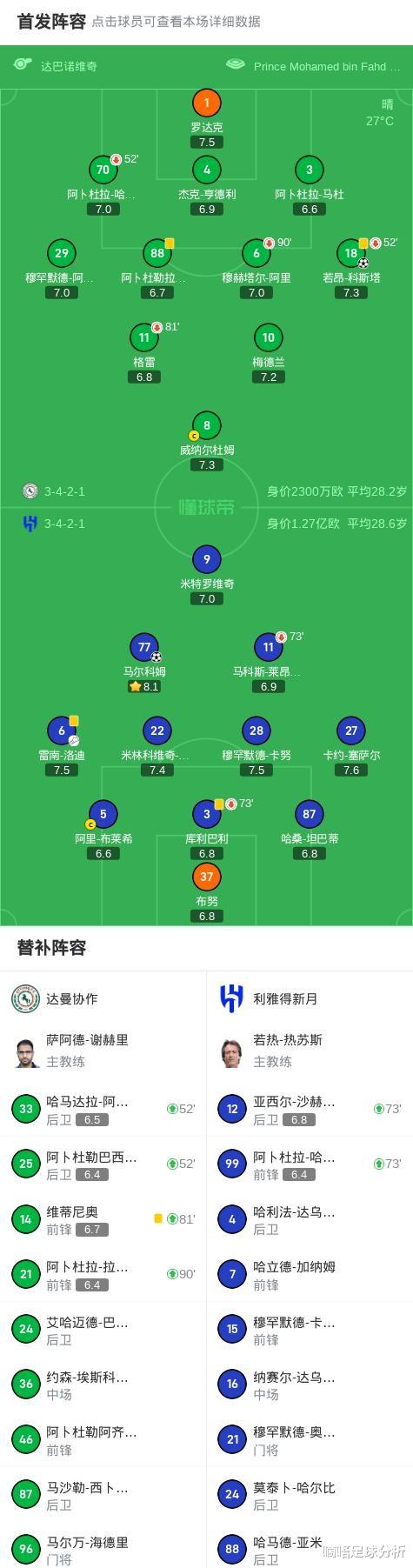 这场比赛,双方都展现出了极高的竞技水平。达曼协作凭借着顽强的防守和关键时刻的把握机会,取得了宝贵的1分。而利雅得新月则展现出强大的进攻实力,可惜最终未能全取三分。