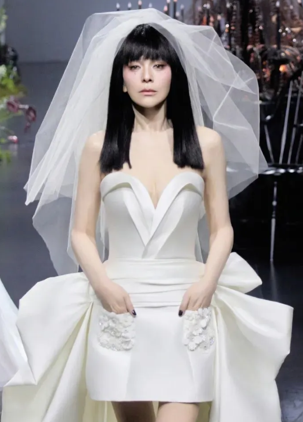 但此次走秀彻底打破角色滤镜。短裙婚纱勾勒出紧致身材,自信笑容与轻盈体态令观众惊叹“少女感十足”。