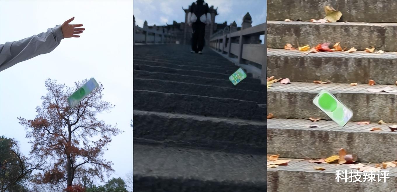 在博主的视频中大家也是各显神通,有博主“不小心”让手机从兜里掉出来,然后滚下泰山的台阶;还有博主让它与华山的石壁“亲密接触”;更有甚者“装都不装”,直接把它从衡山台阶踢下。