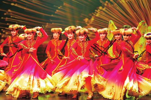 12月15日,大型音舞诗画《掀起你的盖头来——新疆是个好地方》在山西大剧院上演。 王韵菲 摄
