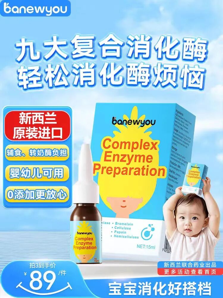 在某平台伴乐优旗舰店,一款“伴乐优”复合消化酶在商品页面宣称,缺少消化酶会导致食物酶解不充分,营养吸收不全面,并列举了宝宝厌食挑食、消化吸收差、发育迟缓、不爱睡觉等婴幼儿“肠胃不好”的场景。称其产品添加了9大消化酶,婴幼儿如有积食、便秘等情况,可在餐后兑入温水服用,也可以加入奶液、辅食中食用。