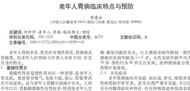 [1]周建法.老年人胃病临床特点与预防[J].黑龙江医学,2004