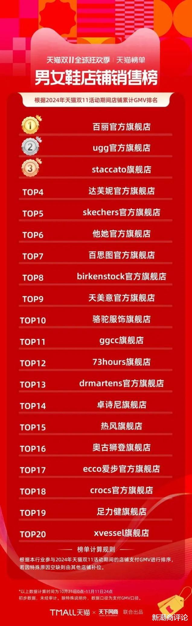 在今年双十一天猫男女鞋店铺销售榜TOP20中,斯凯奇排名第五,是唯一上榜的运动品牌。根据规划,到2026年,斯凯奇的中国门店将再新增近3000家,并计划达成300亿元的营收。公司则有望达成100亿美元的全球年销售额。