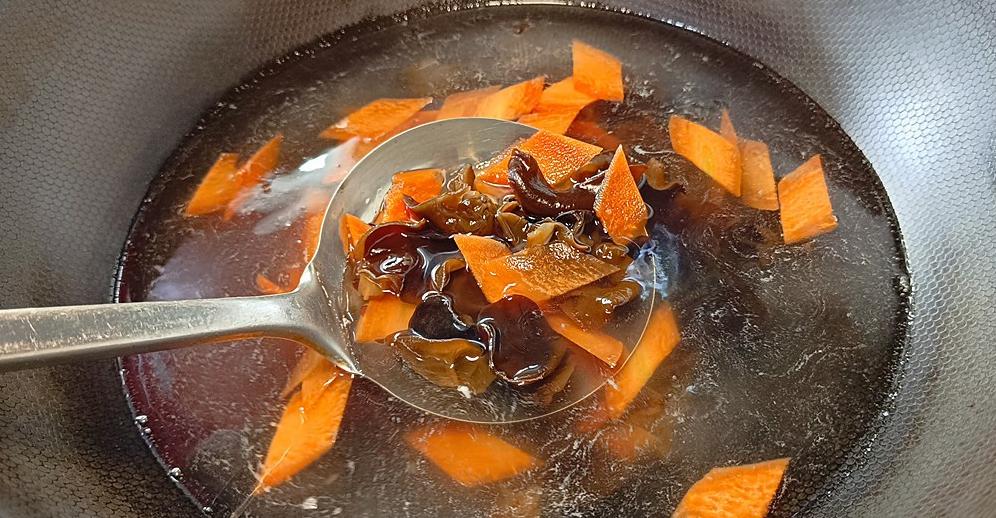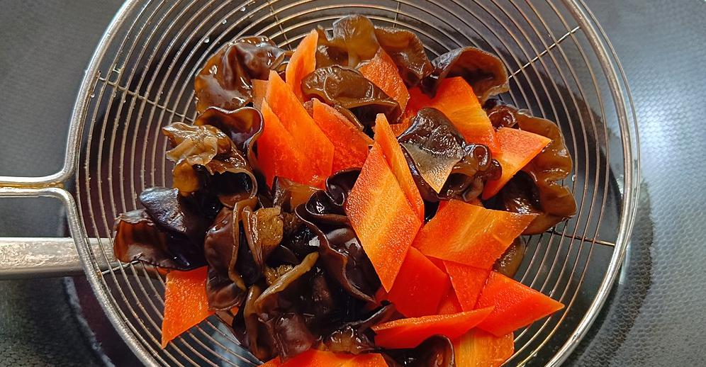 木耳和胡萝卜一定要焯水,这样不仅能够去异味,还能减少炒制时间,保持食材的营养和清脆。