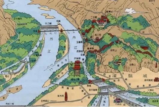 前秦时期的岷江雨季泛滥成灾,旱季赤地千里,李冰父子汲取前人治水经验,因势利导,率众在岷江出山口处独创了无坝引水系统,主体工程由鱼嘴分水堤——将岷江分为内外两江、飞沙堰溢洪道——泄洪排沙、宝瓶口进水口——控流灌溉构成,采用竹笼卵石法在急流中筑成坚固堤防。